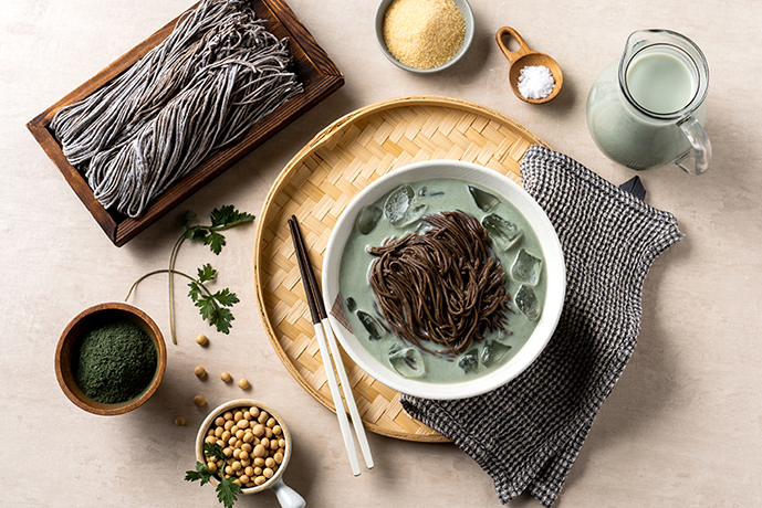 Modified the soba recipe to suit Korean tastes, beginning with soba and kongguksu.(cold soybean soup)