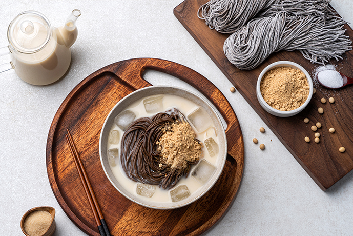 Modified the soba recipe to suit Korean tastes, beginning with soba and kongguksu.(cold soybean soup)
